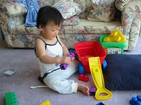 丫丫坐在我们的新家,专注的玩着她的积木。