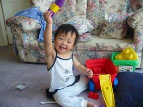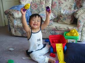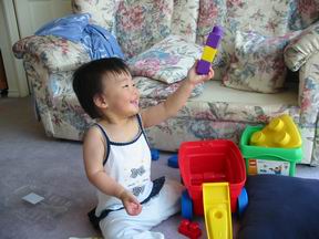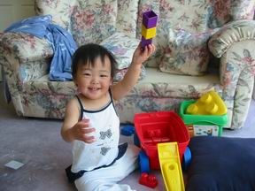 看,才把4快积木搭起来,就表现的跟得了奥斯卡奖似的。如此容易骄傲,家长教育的失败啊! :((