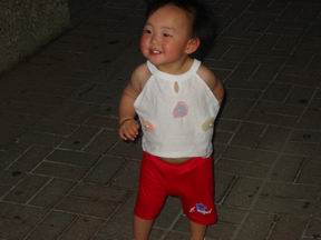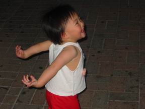 忽然有一天,丫丫就开始象小鸭子一样的走路,她可以这个姿势走很长一段路,孩子的创意,真让我们感到佩服与有趣。
